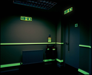 Photoluminescent escape route marking systems can aid the identification of stairways, level changes, hazards, fire alarm call points, escape routes, clear ways (especially in open plan offices and factory/industrial applications) as well as providing general low level illumination.